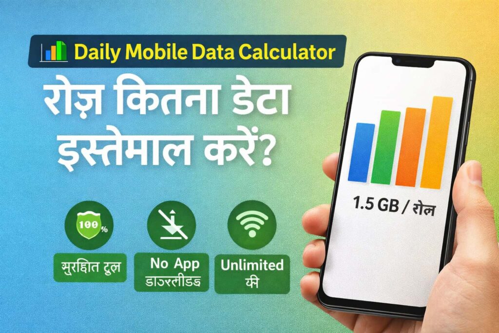 यह Mobile Data Usage Calculator hindi टूल उन लोगों के लिए बनाया गया है। जो जानना चाहते हैं कि रोज़ कितना इंटरनेट डेटा इस्तेमाल करना चाहिए, ताकि उनका मोबाइल डेटा जल्दी खत्म न हो। आपको अपनी Mobile data रोज़ कितना Use करना चाहिए, यह जानकारी आपको पहली ही मिलता है।